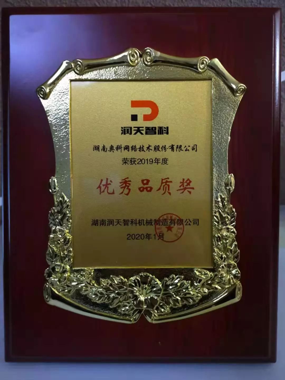 合作共赢,共铸辉煌!世界杯在线平台喜获湖南润天智科机械制造有限公司2019年度“优秀品质奖”。