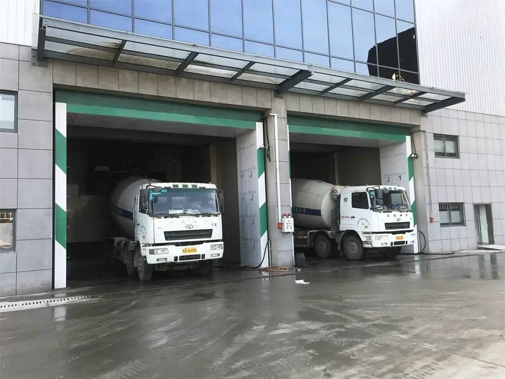 卸料口洗车机安装在下料口门口,世界杯在线(中国)侧面采用摇摆式水刀结构,能够进行全车冲洗,顶部设置有顶喷,地面设置有底盘冲洗。该洗车机不需要占用搅拌站额外场地,适合场地较小的客户。