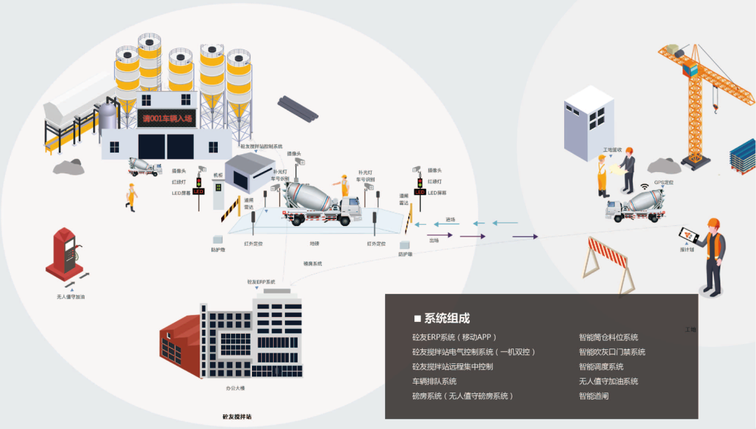 湘坪顺应时代潮流,积极向信息化转型,2021年,湘坪上线砼友的商混企业智能化整体解决方案。方案以砼友ERP世界杯在线(中国)为中心,集成生产控制世界杯在线(中国)、 远程集中控制、磅房世界杯在线(中国)、车辆排队世界杯在线(中国)、筒仓料位世界杯在线(中国)、吹灰口门禁世界杯在线(中国)、无人值守加油世界杯在线(中国)、门禁世界杯在线(中国)等,从销售-生产-运输-结算全业务过程监管,实现设备互联 、数据互通、场景互融,从智能生产到智慧运营,满足企业多组织管理、集约化管理、信息化管理、移动化办公的要求,打造新型智能搅拌站。