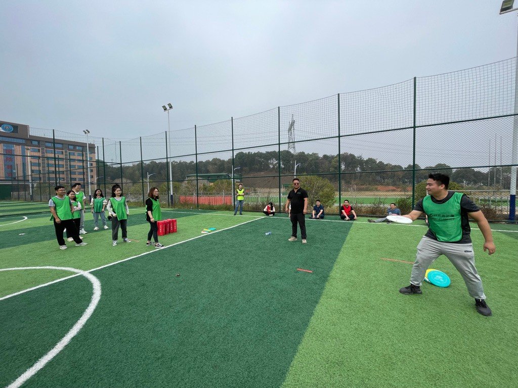 下午,在教练的带领下,大家学习了掷飞盘,并开展了一场精彩纷呈的对抗赛。在一次次通力协作、精妙配合中,队员们真切体验到了奉献、协作、勇气带来的喜悦,团队的凝聚力、向心力、战斗力得到了充分激发。