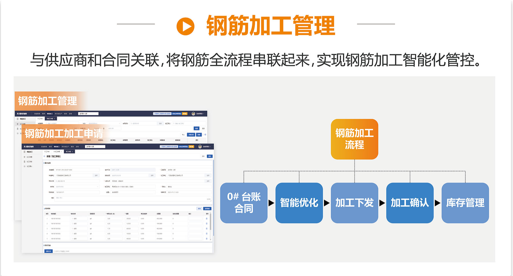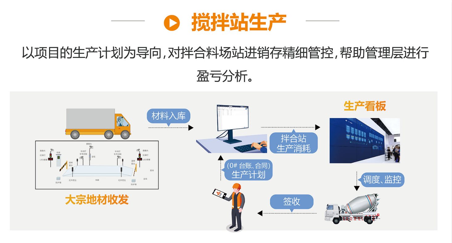 平台主要包括物资管理、钢筋加工、拌合站生产、加油管理等功能: